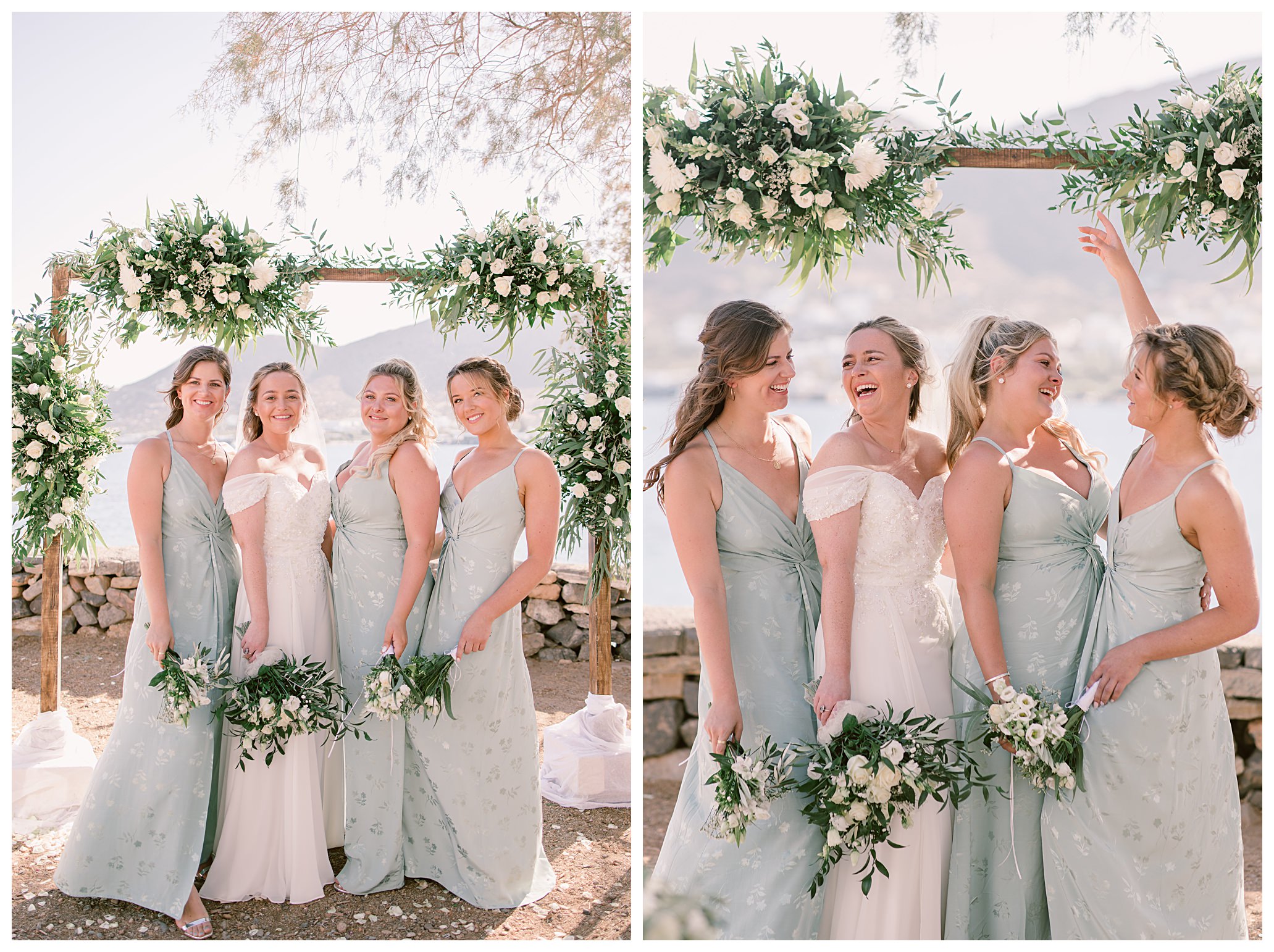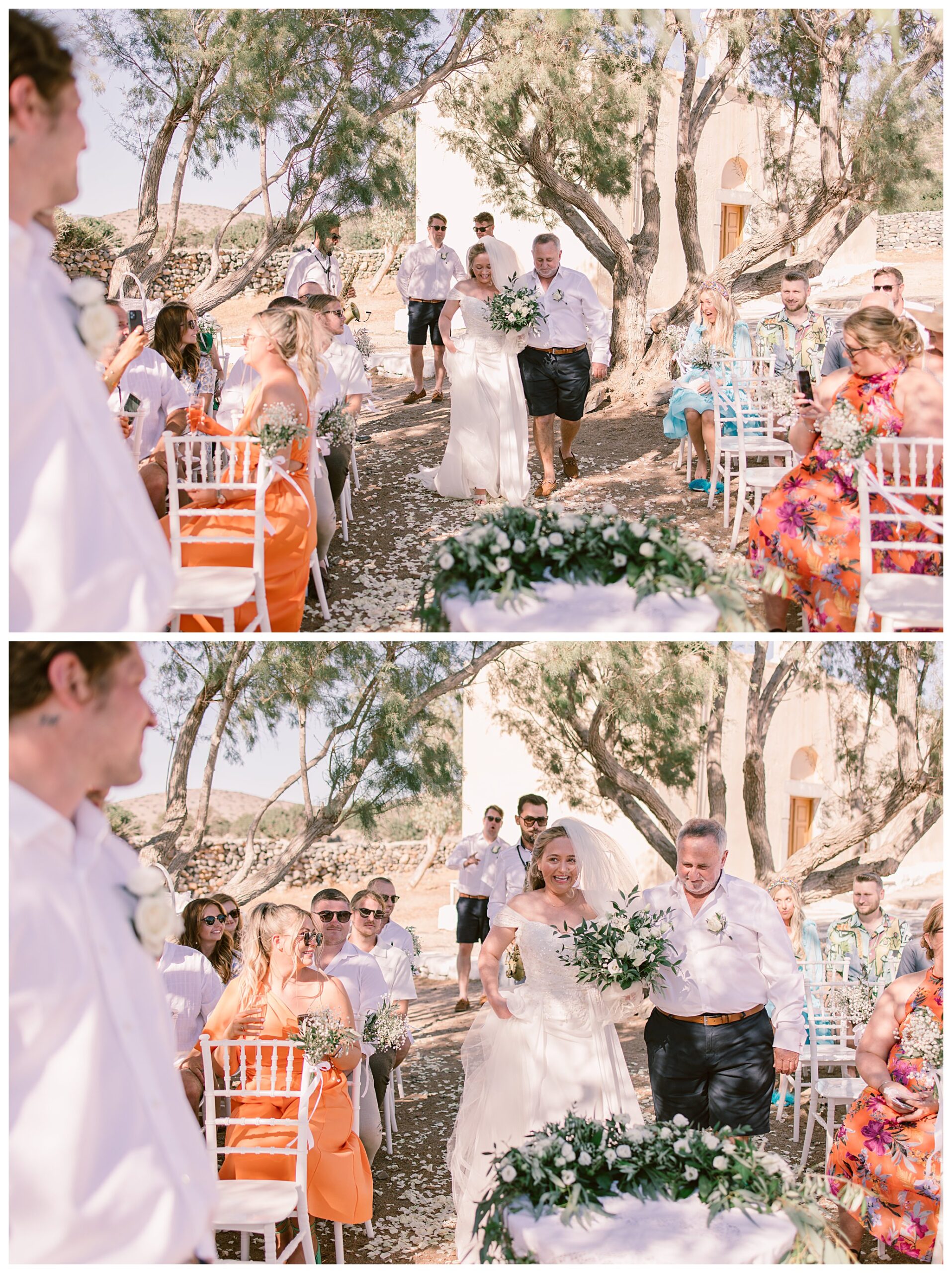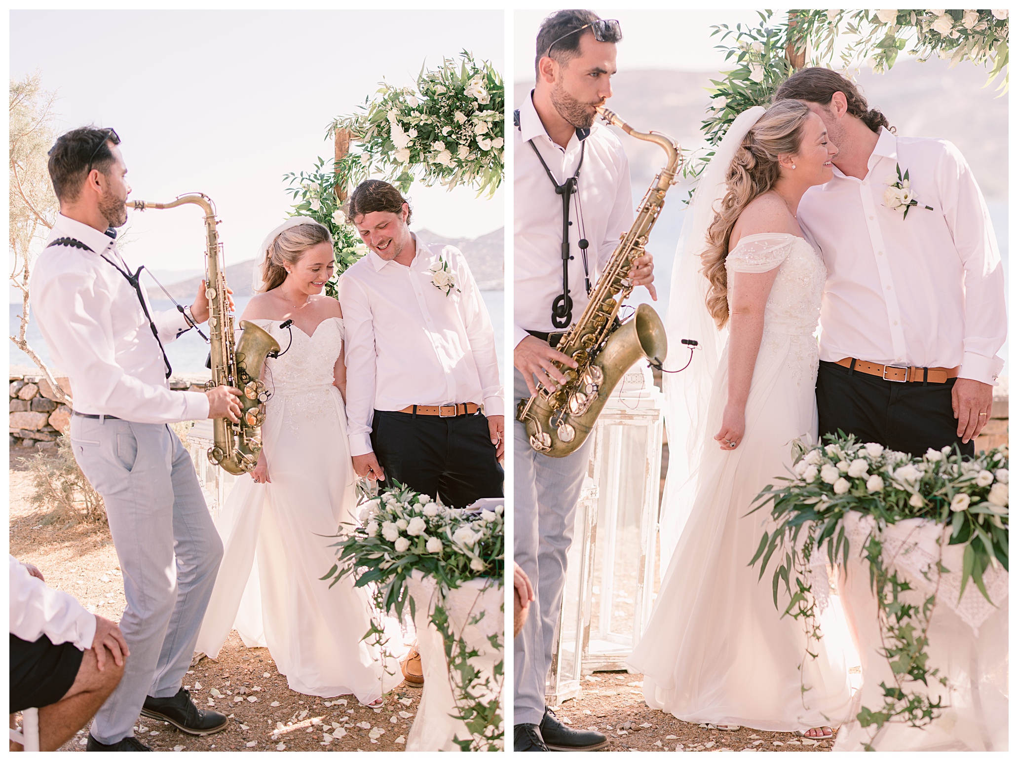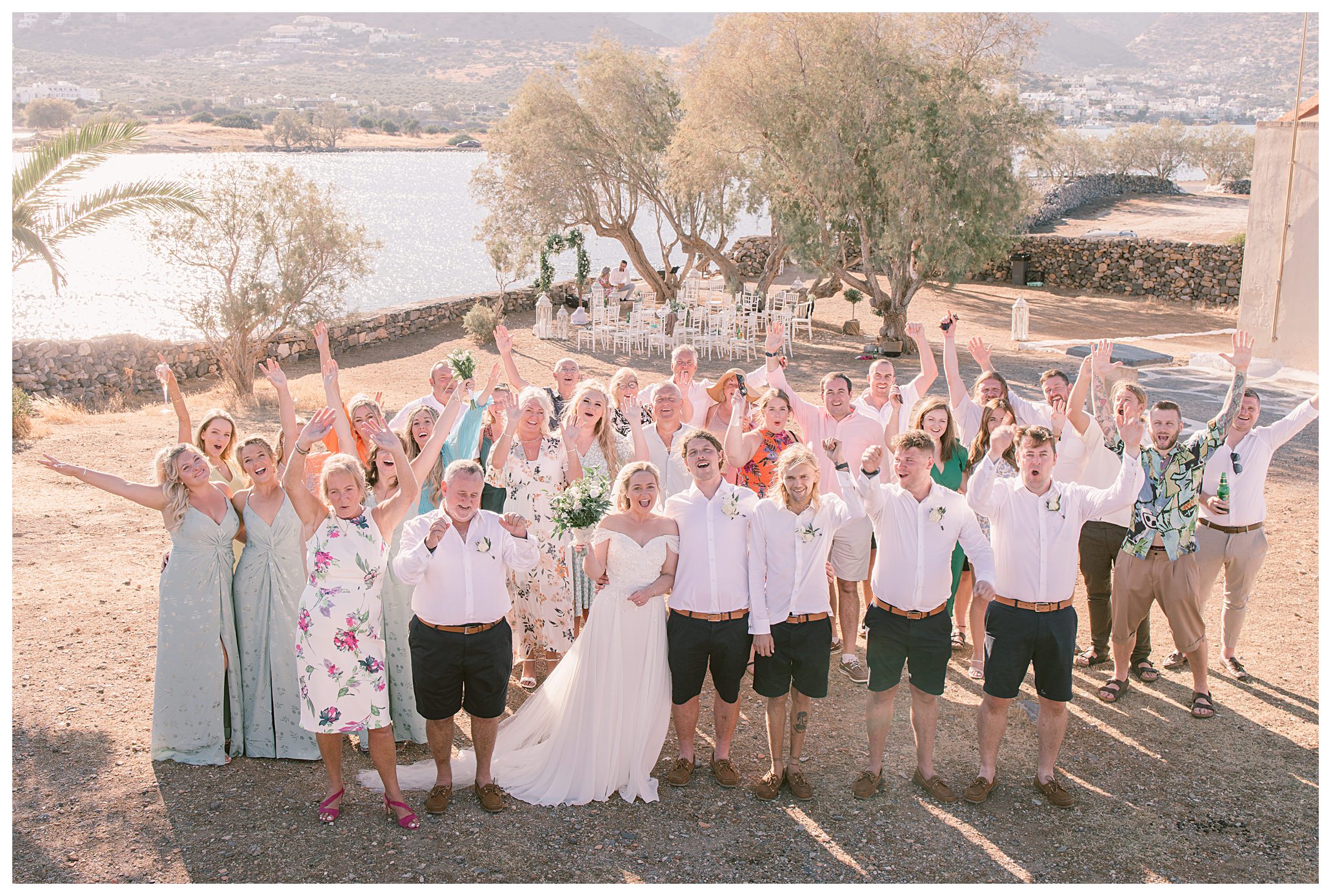 On the day of the wedding the weather was glorious, blue skies and sunshine, plus warm weather. Daisy & Dan both got ready separately at the hotel they were staying in – Tui Blue Elounda Village then went on to Analipsi Chapel for a beautiful outdoor ceremony with the most stunning coastal backdrop.