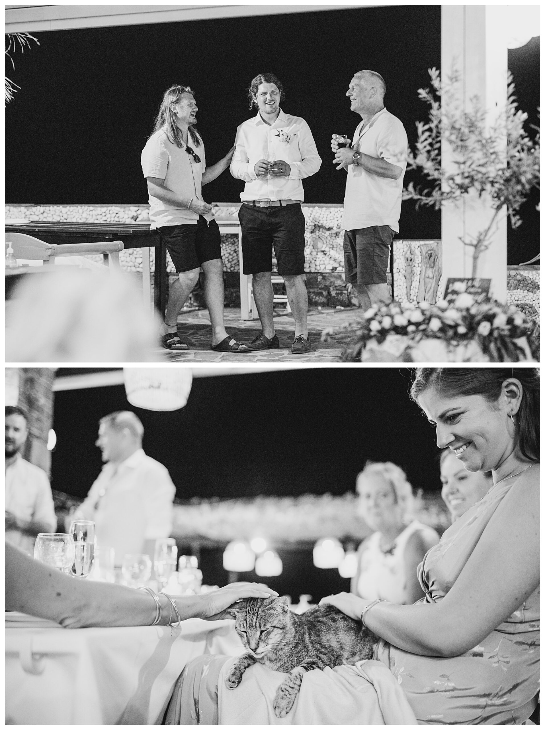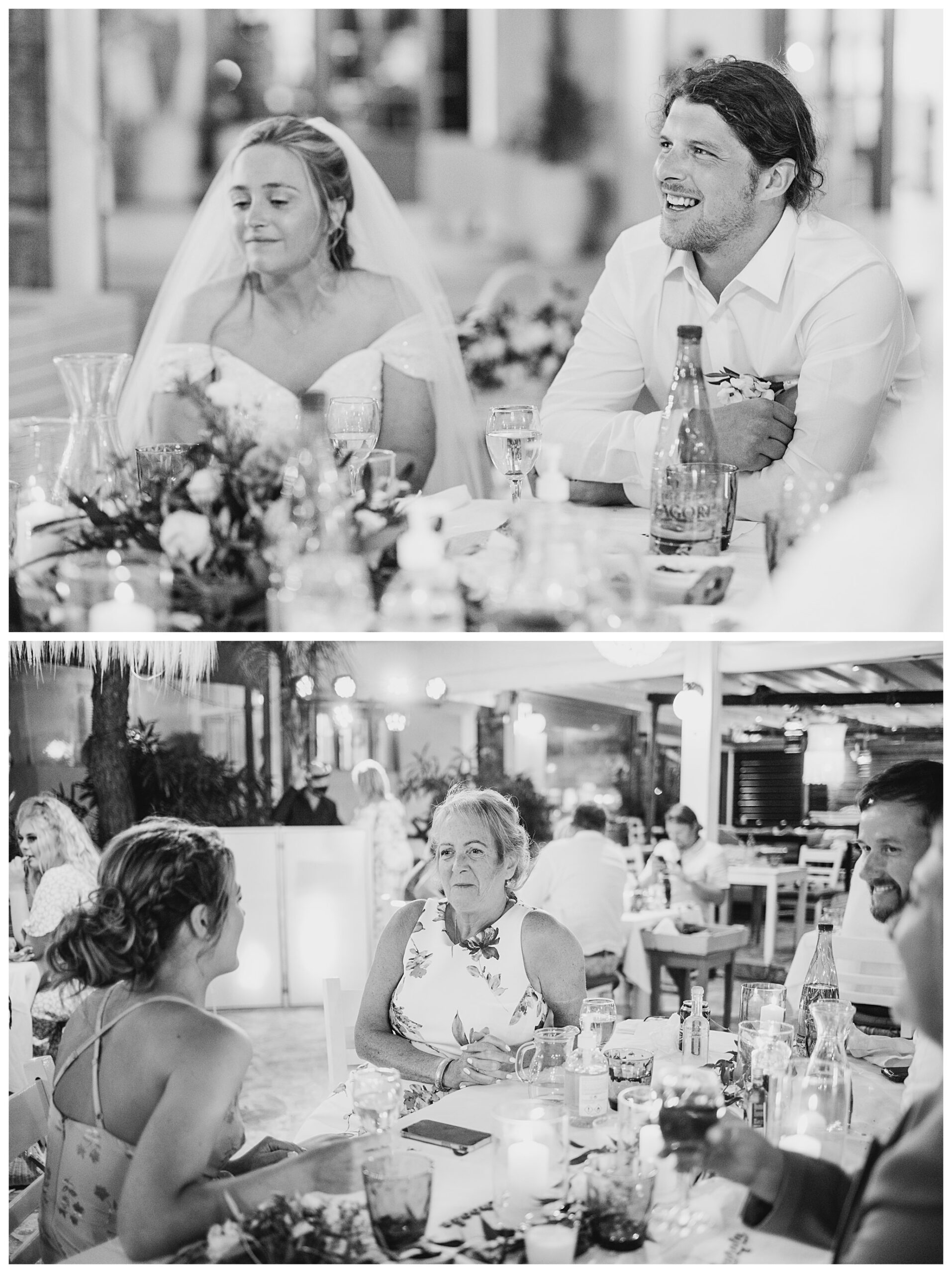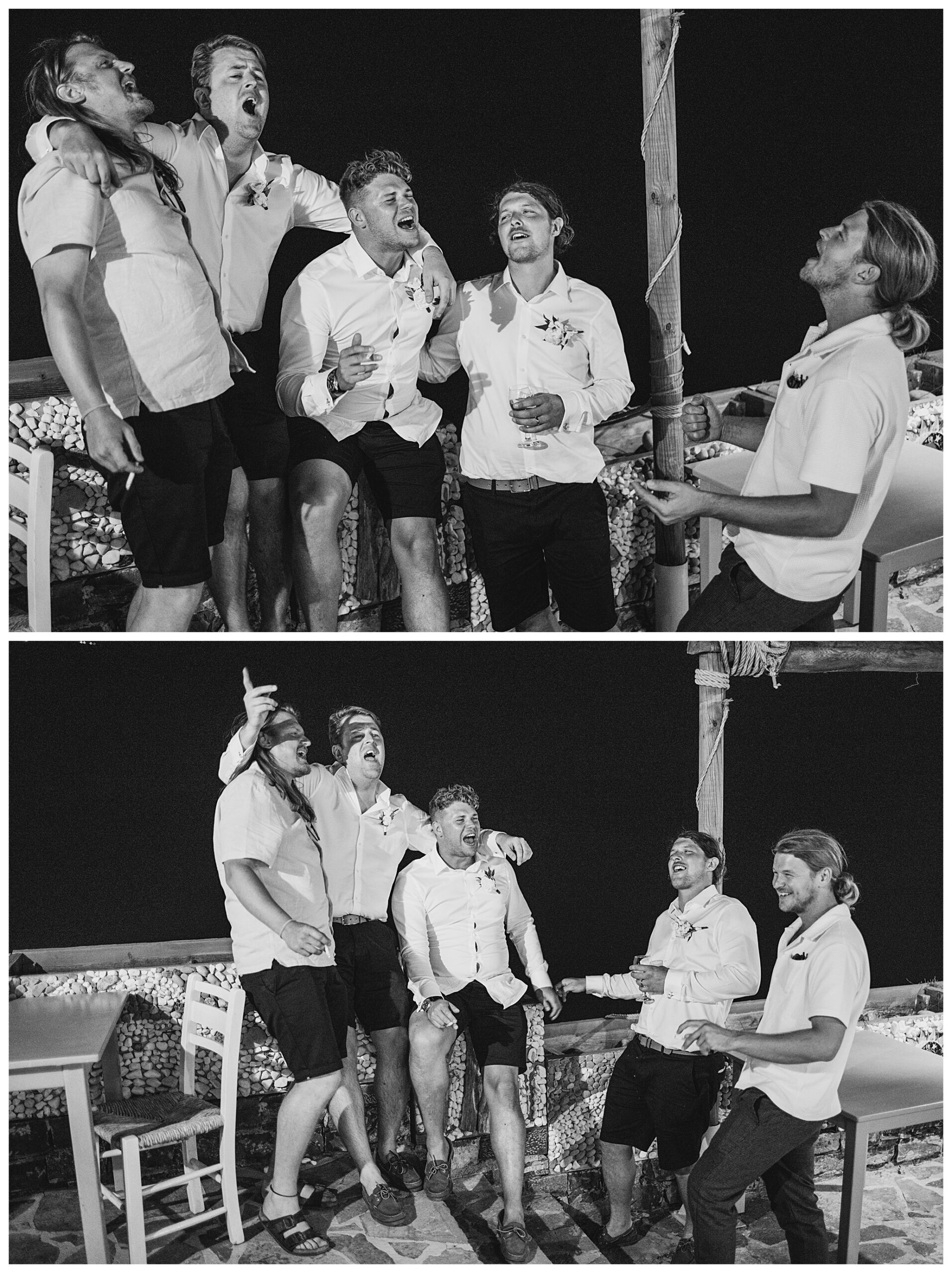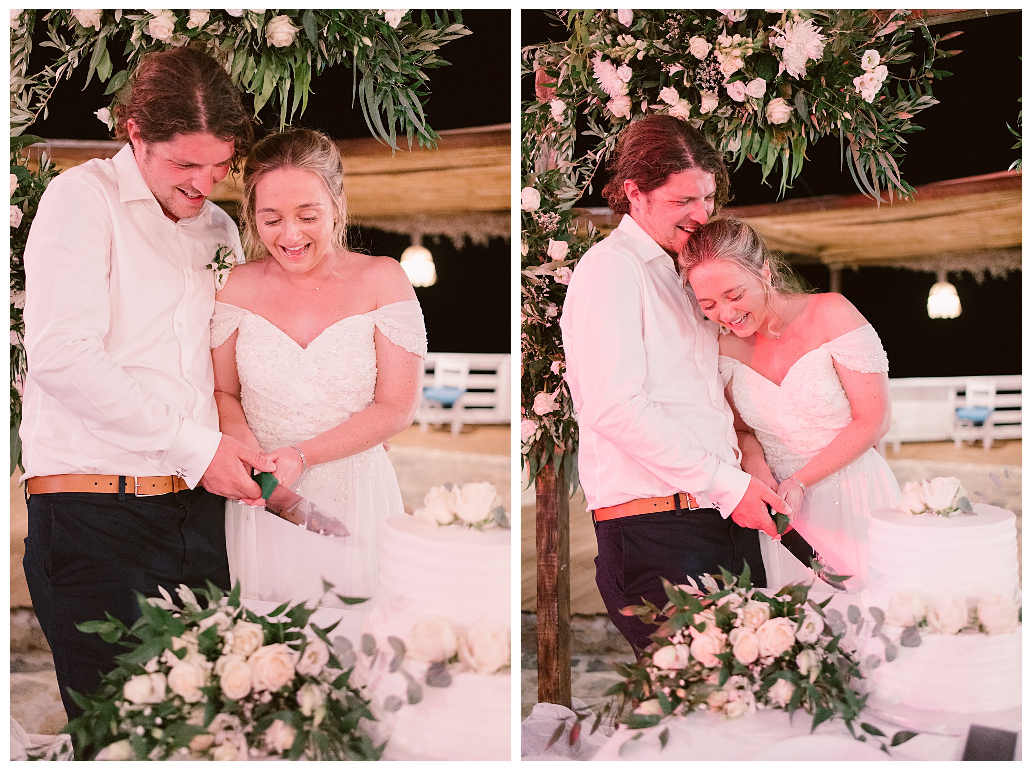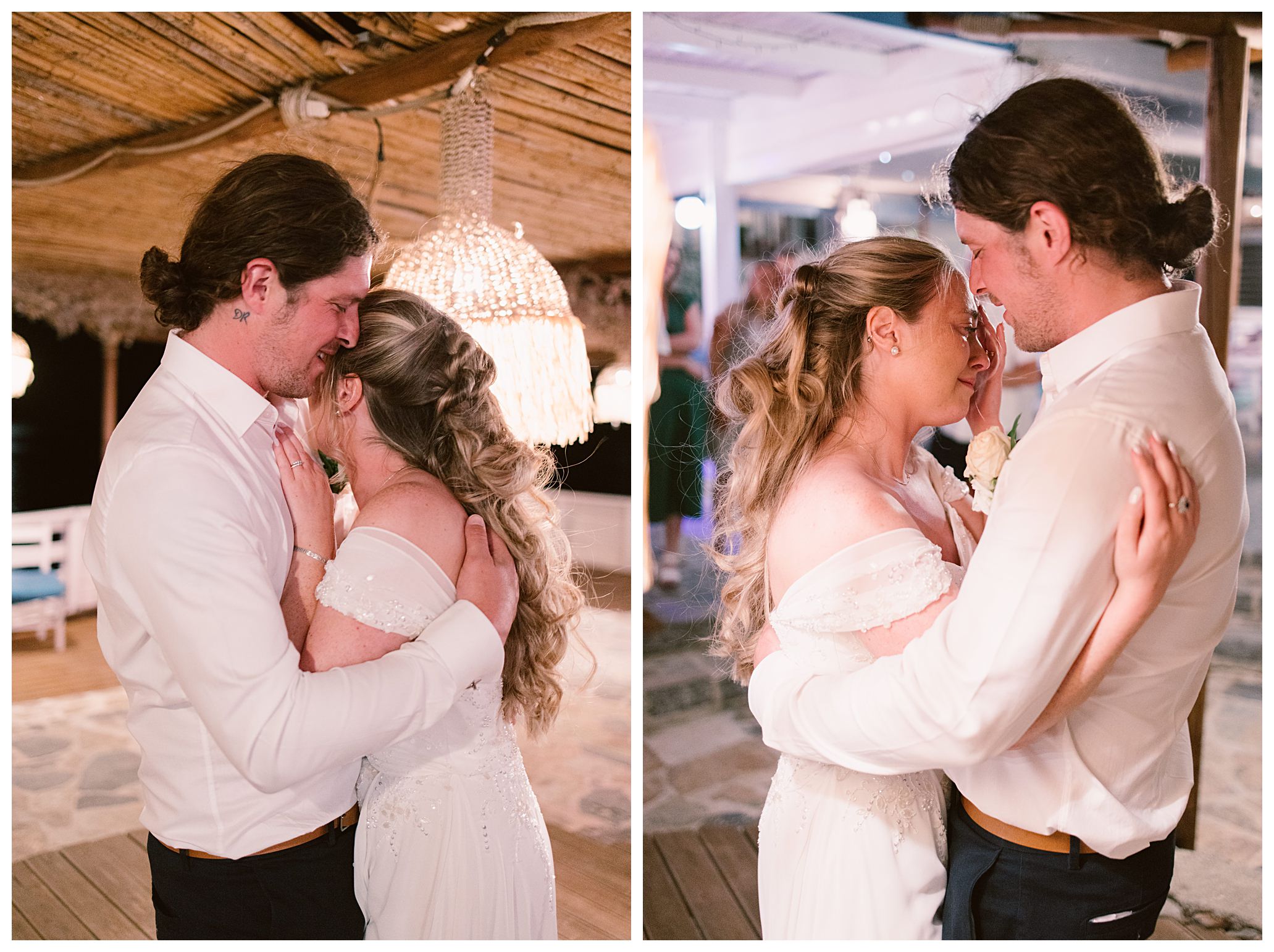 As we unexpectedly ended up spending a bit of time taking some photos by the huge puddle, we were running late for the boat, so Dan & Daisy’s lovely wedding planner, Janet from Crete Weddings drove us to the boat where we sailed for about an hour until we moored up at sunset in Plaka, where Dan & Daisy had their wedding reception at a lovely restaurant on the sea front called Thalassa. They had some delicious traditional Greek food, then did their speeches, cut their cake and then danced the night away.