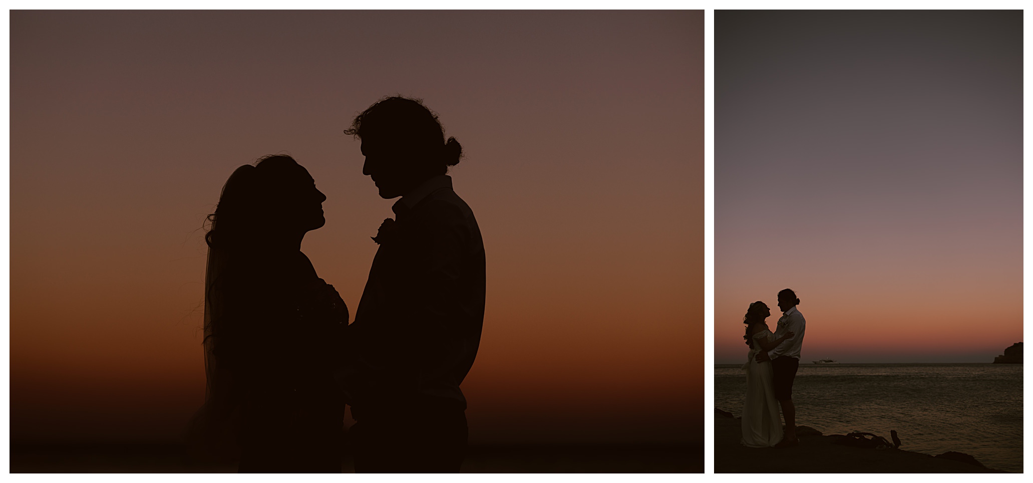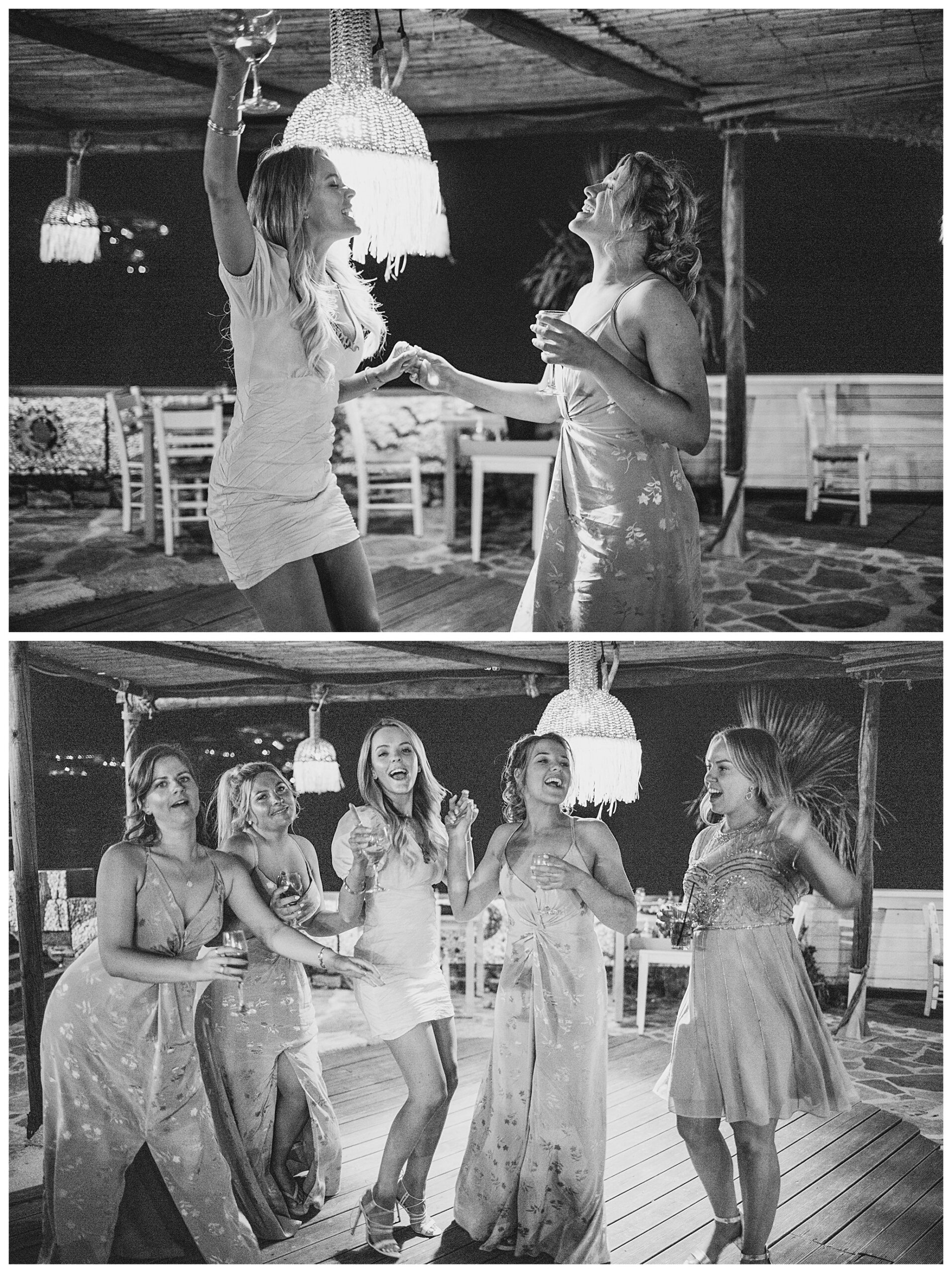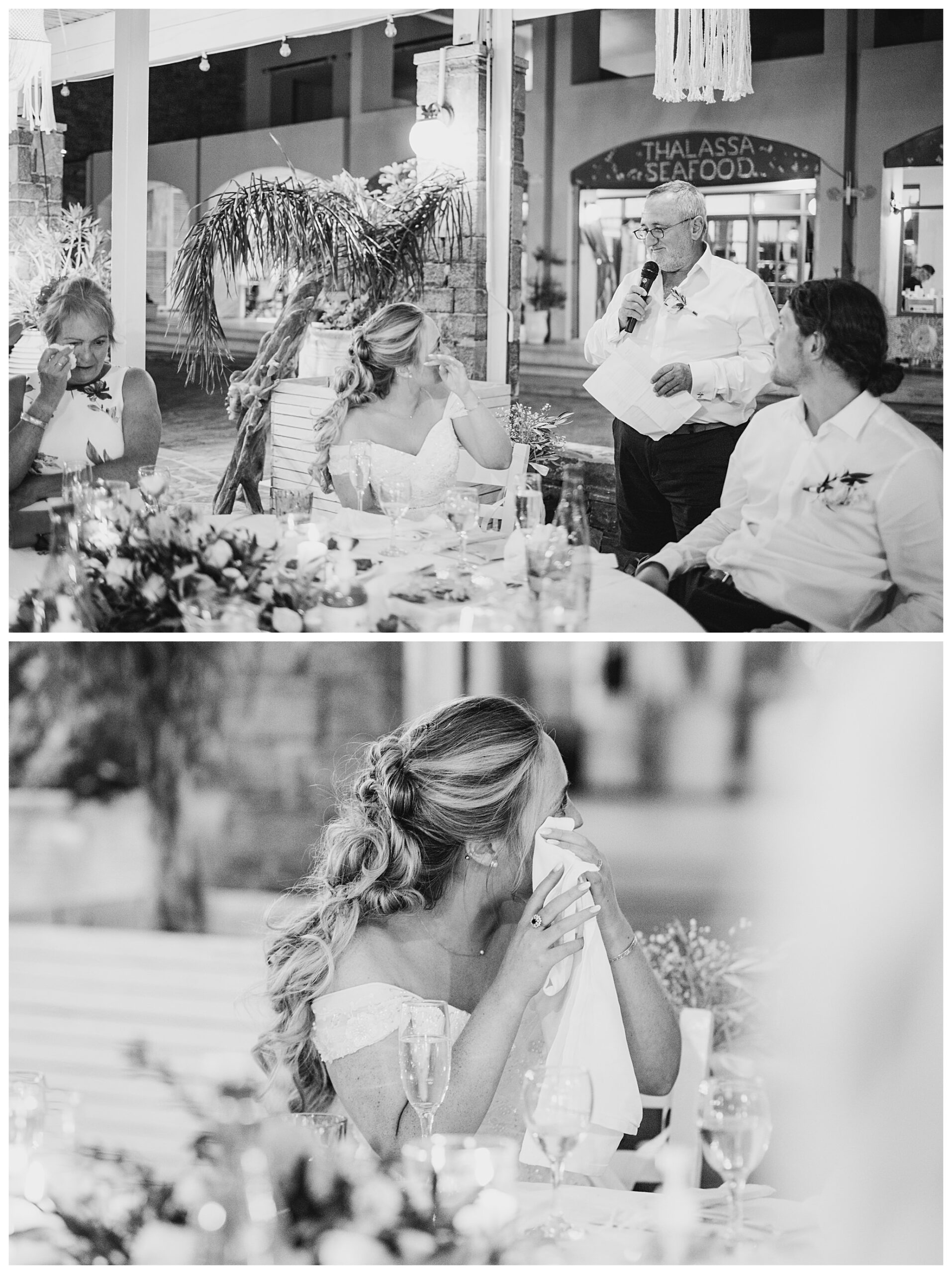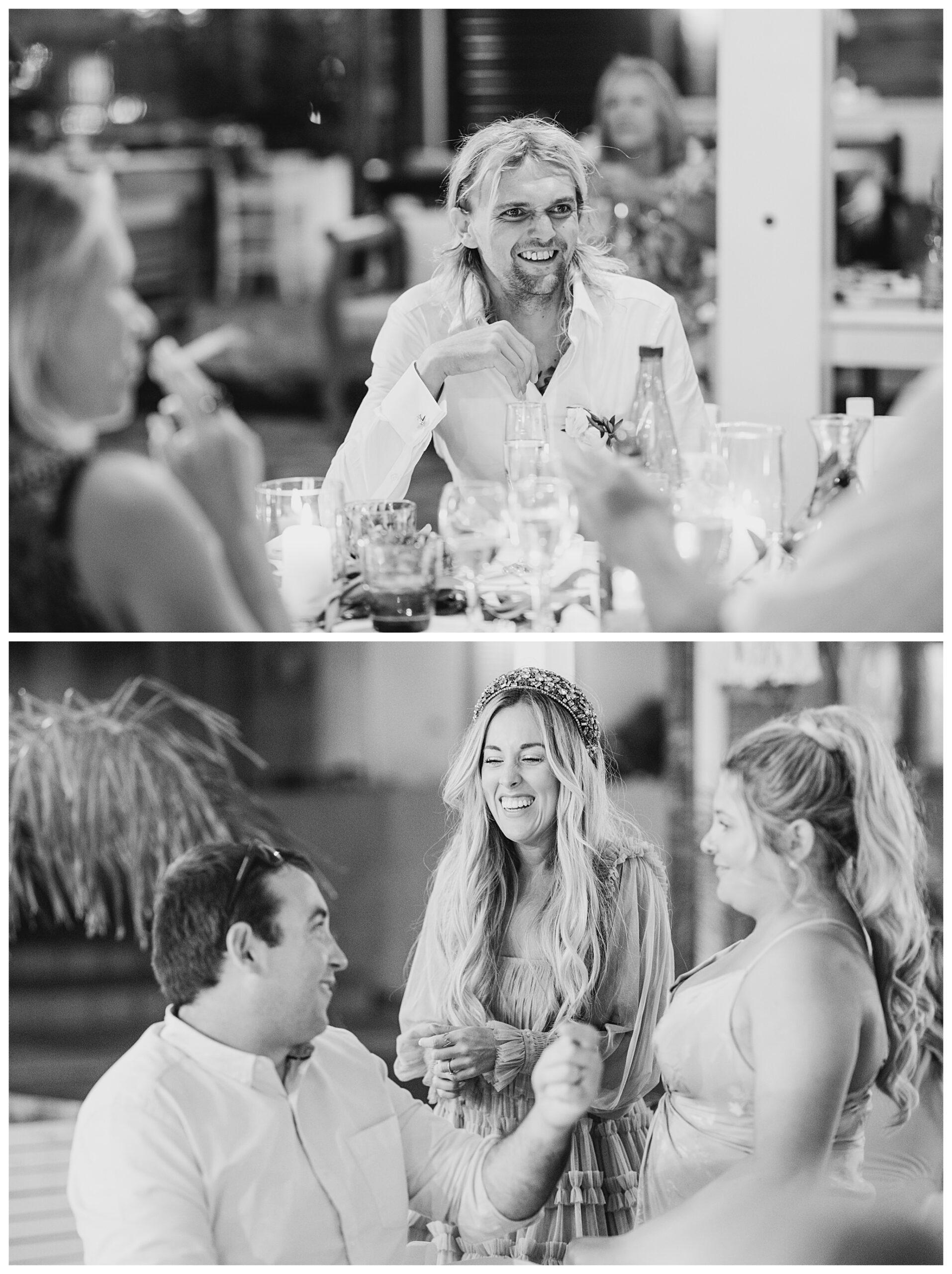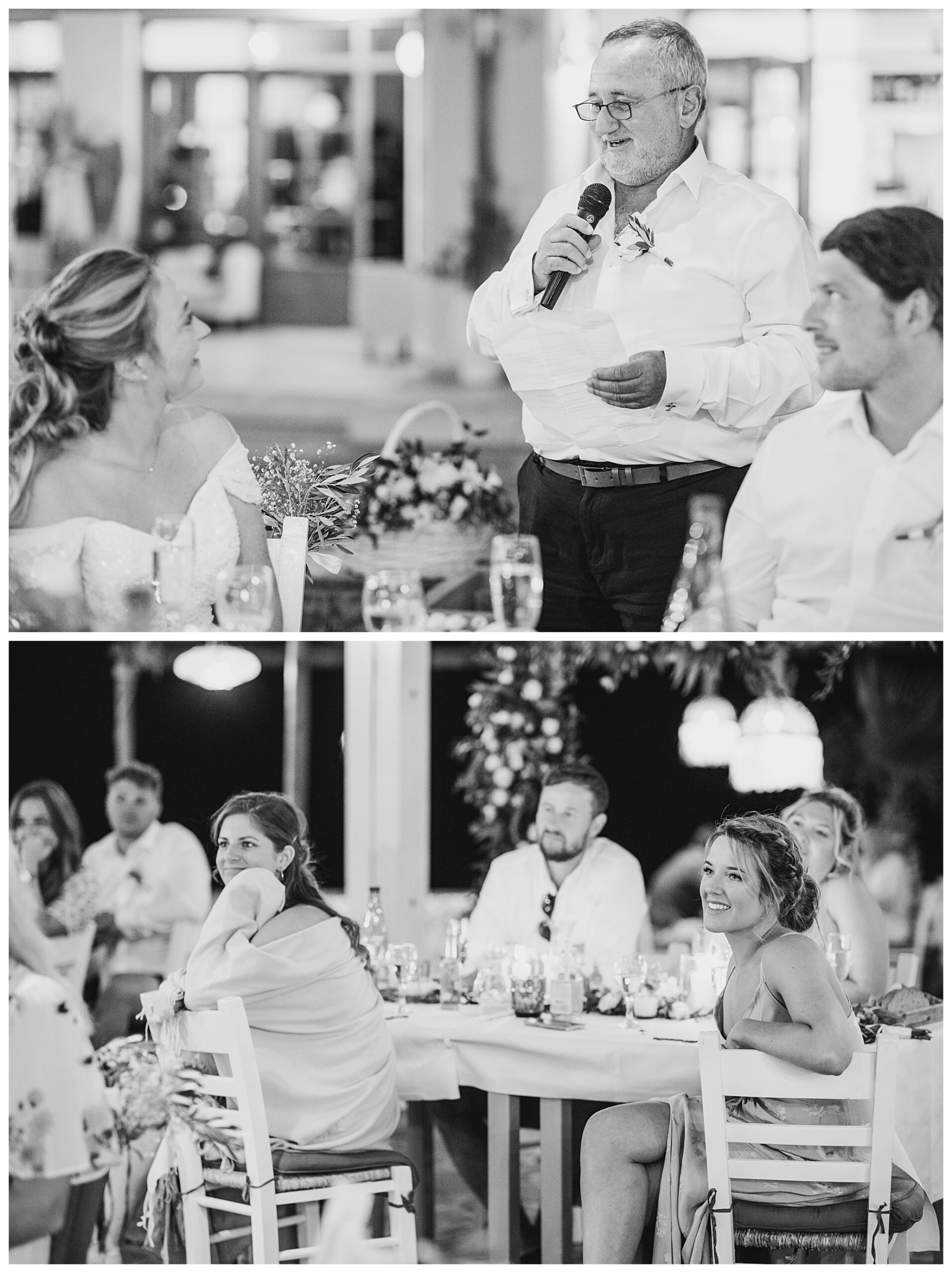 As we unexpectedly ended up spending a bit of time taking some photos by the huge puddle, we were running late for the boat, so Dan & Daisy’s lovely wedding planner, Janet from Crete Weddings drove us to the boat where we sailed for about an hour until we moored up at sunset in Plaka, where Dan & Daisy had their wedding reception at a lovely restaurant on the sea front called Thalassa. They had some delicious traditional Greek food, then did their speeches, cut their cake and then danced the night away.