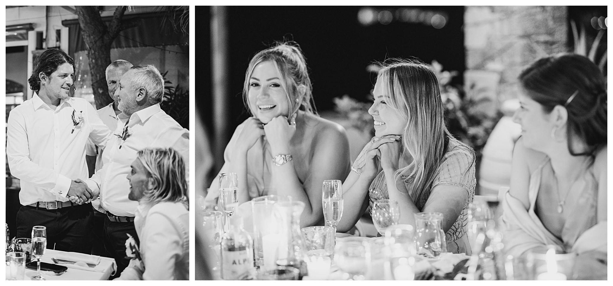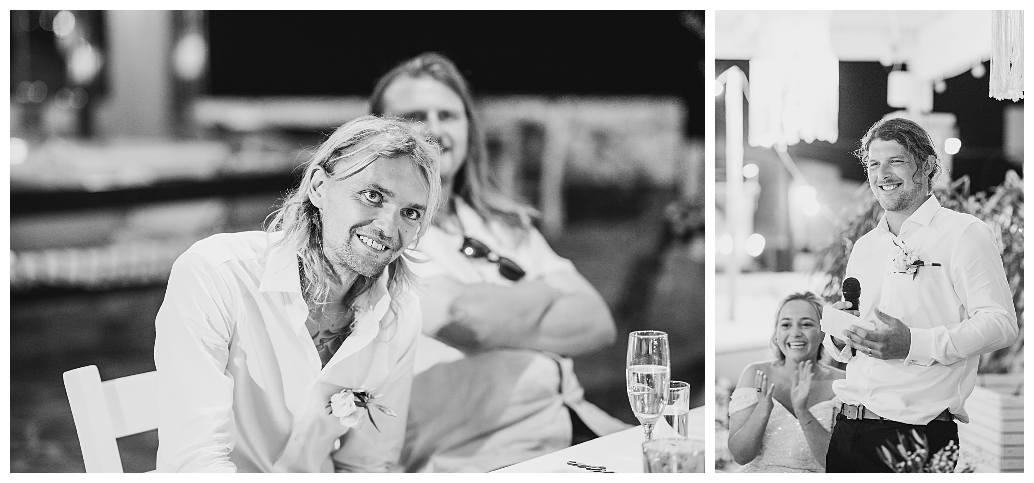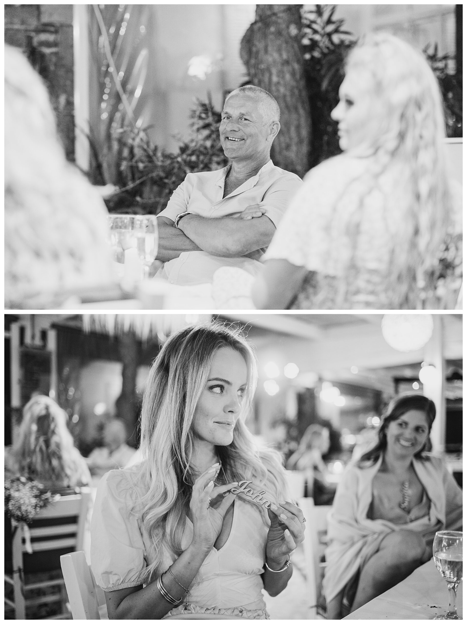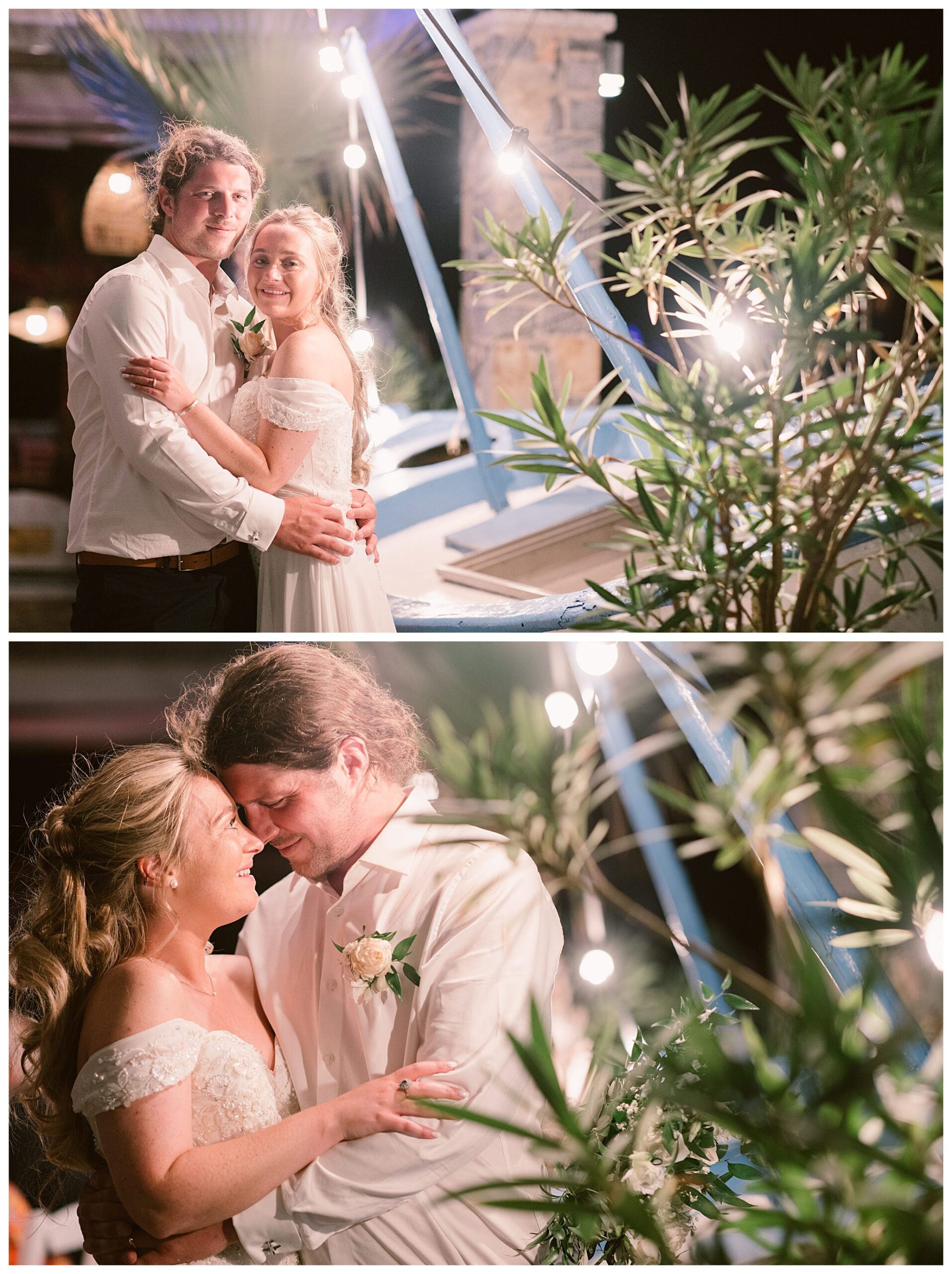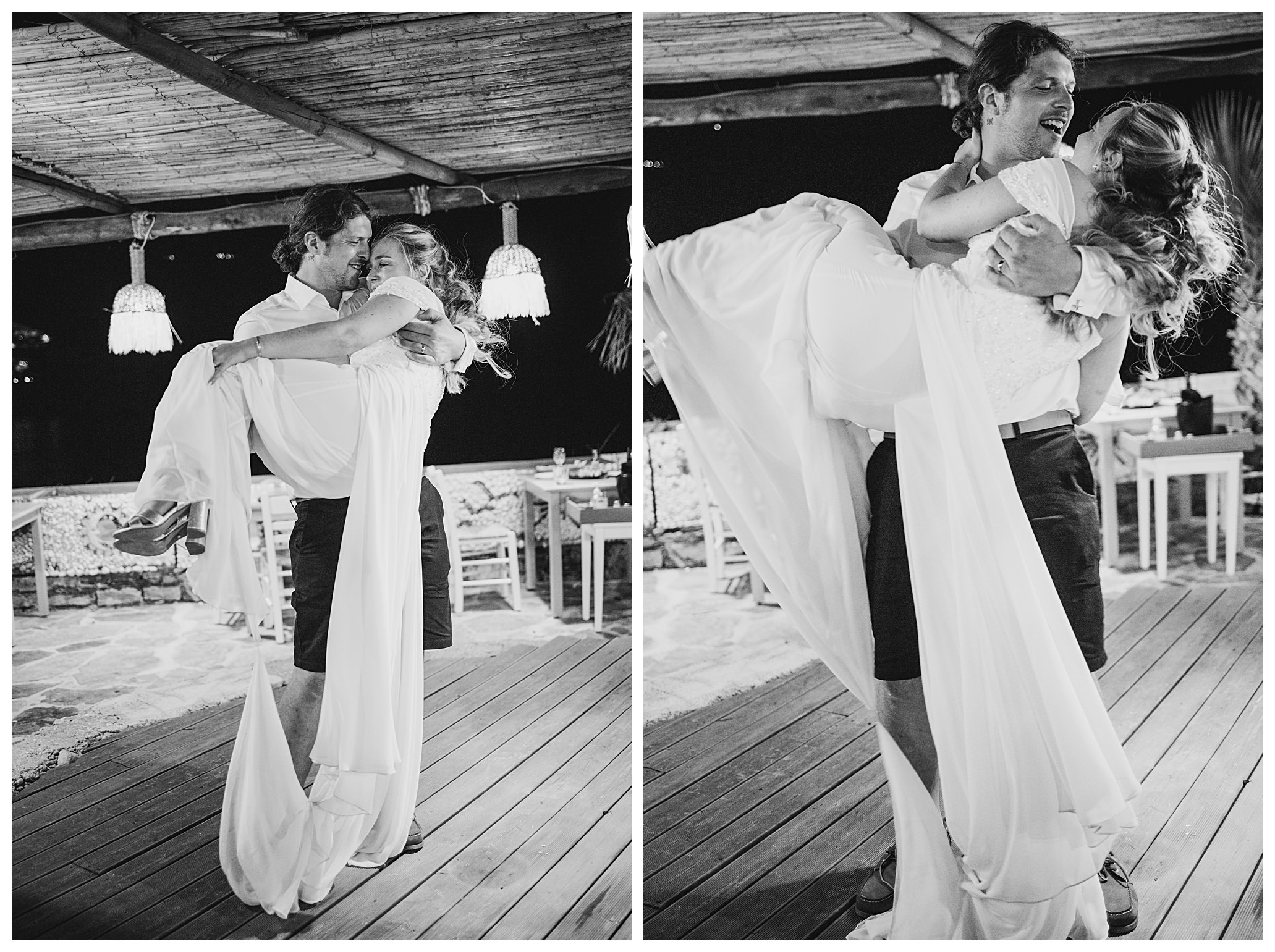 As we unexpectedly ended up spending a bit of time taking some photos by the huge puddle, we were running late for the boat, so Dan & Daisy’s lovely wedding planner, Janet from Crete Weddings drove us to the boat where we sailed for about an hour until we moored up at sunset in Plaka, where Dan & Daisy had their wedding reception at a lovely restaurant on the sea front called Thalassa. They had some delicious traditional Greek food, then did their speeches, cut their cake and then danced the night away.