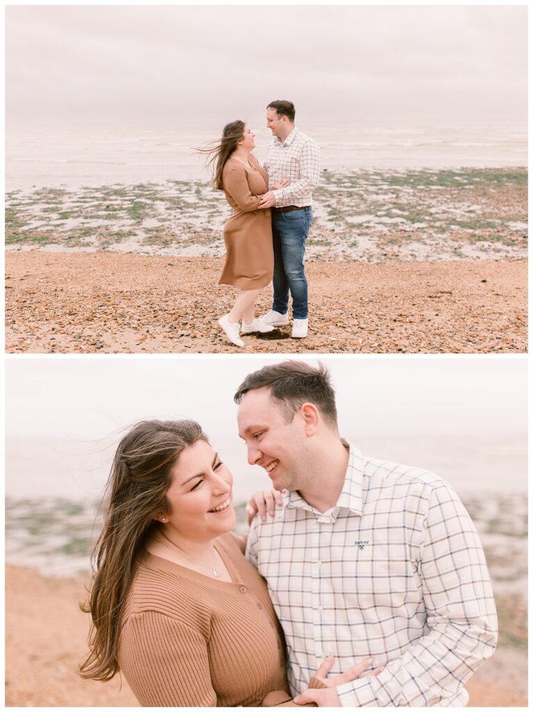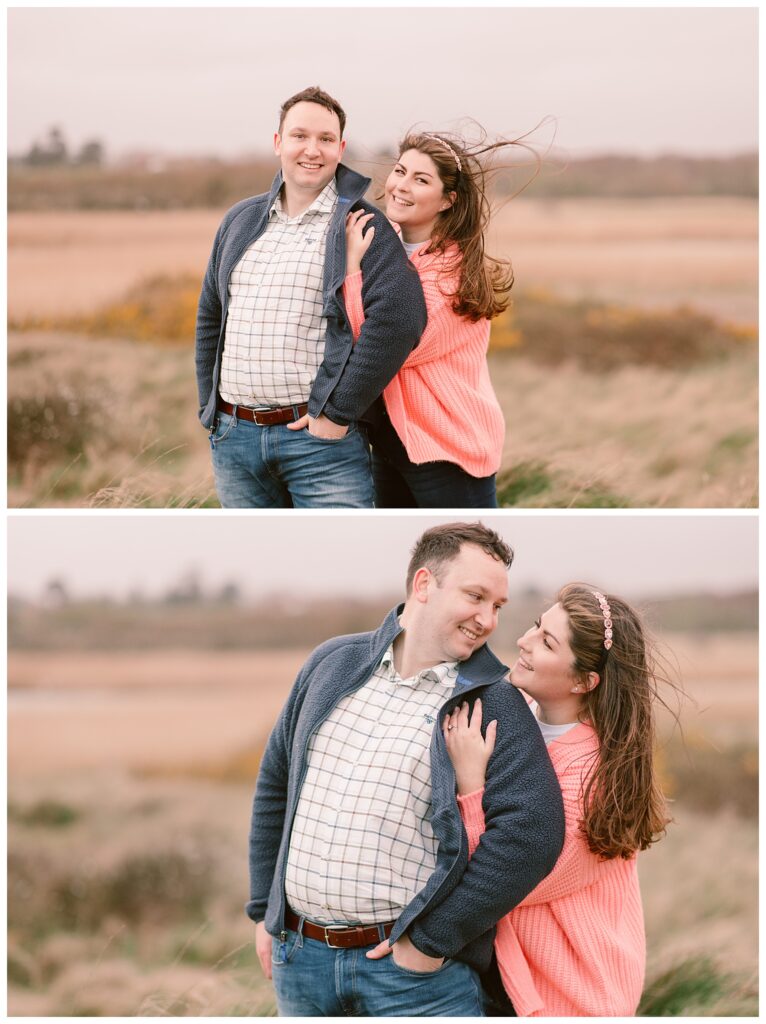 They chose Hill Head as the location for their engagement shoot because of the variety in backgrounds that it provides with the beach huts, the sea, the little harbour and then the haven just up the road. They had also seen one of my other blog posts of an engagement shoot that I had done at the same location and thought that it would be a great place for their own shoot. Sarah also brought a couple of outfit choices and cardigans to give variety of looks to the photos and Dan added on his jacket as it got very chilly towards the end of the shoot as the sun went down. In my opinion he did very well to leave it off as long as he did because it was so windy and I was personally freezing!
